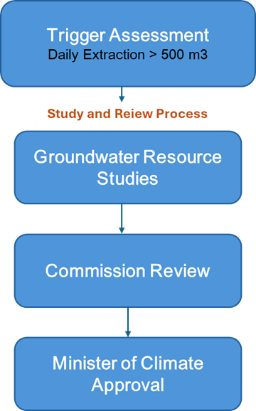 In Estonia the groundwater resource assessments become mandatory when daily extraction volumes exceed 500 cubic meters from an aquifer. This regulatory framework establishes a comprehensive oversight structure, with the groundwater commission serving as the primary review body for resource study reports, which ultimately receive ministerial approval through the Minister of Climate.