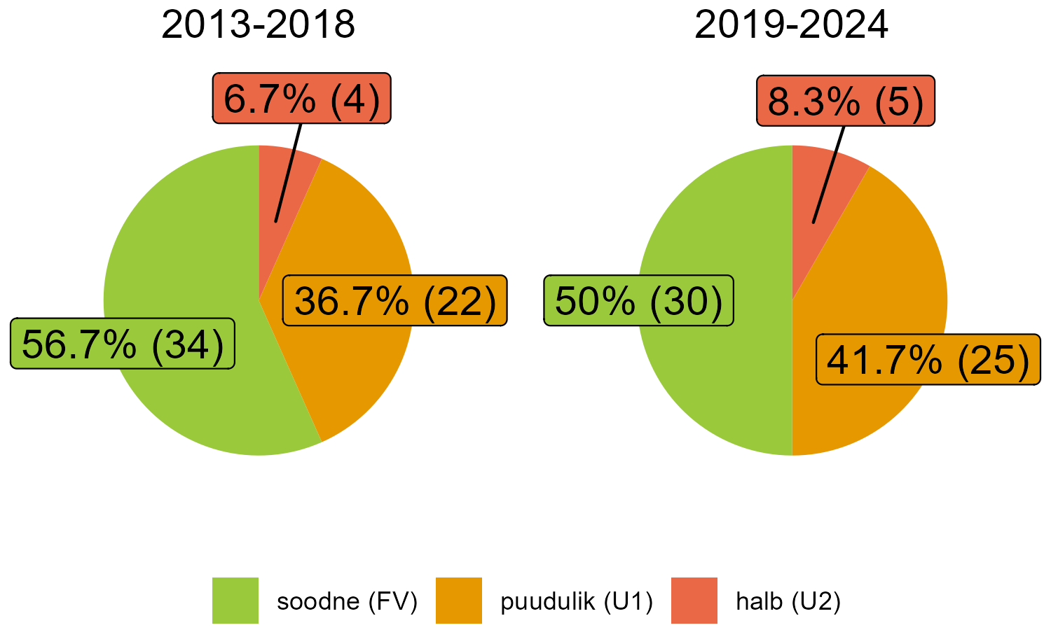 Eesti loodusdirektiivi liikide ja elupaigatüüpide seisundi hinnangud kolmel eelneval aruandeperioodil ning võrdlus Euroopa Liiduga on leitav siit.