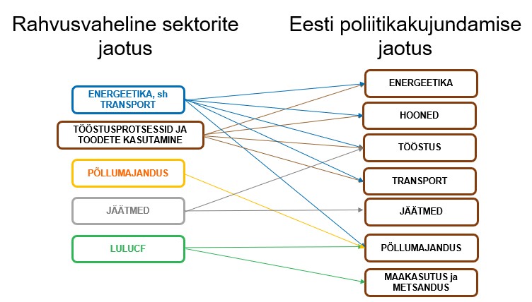 Vastavusskeem IPCC juhiste järgi kasutatavate ja Eesti poliitikakujundamises kasutatavate kasvuhoonegaaside kategooriate vahel: Sektorite jaotus.jpg